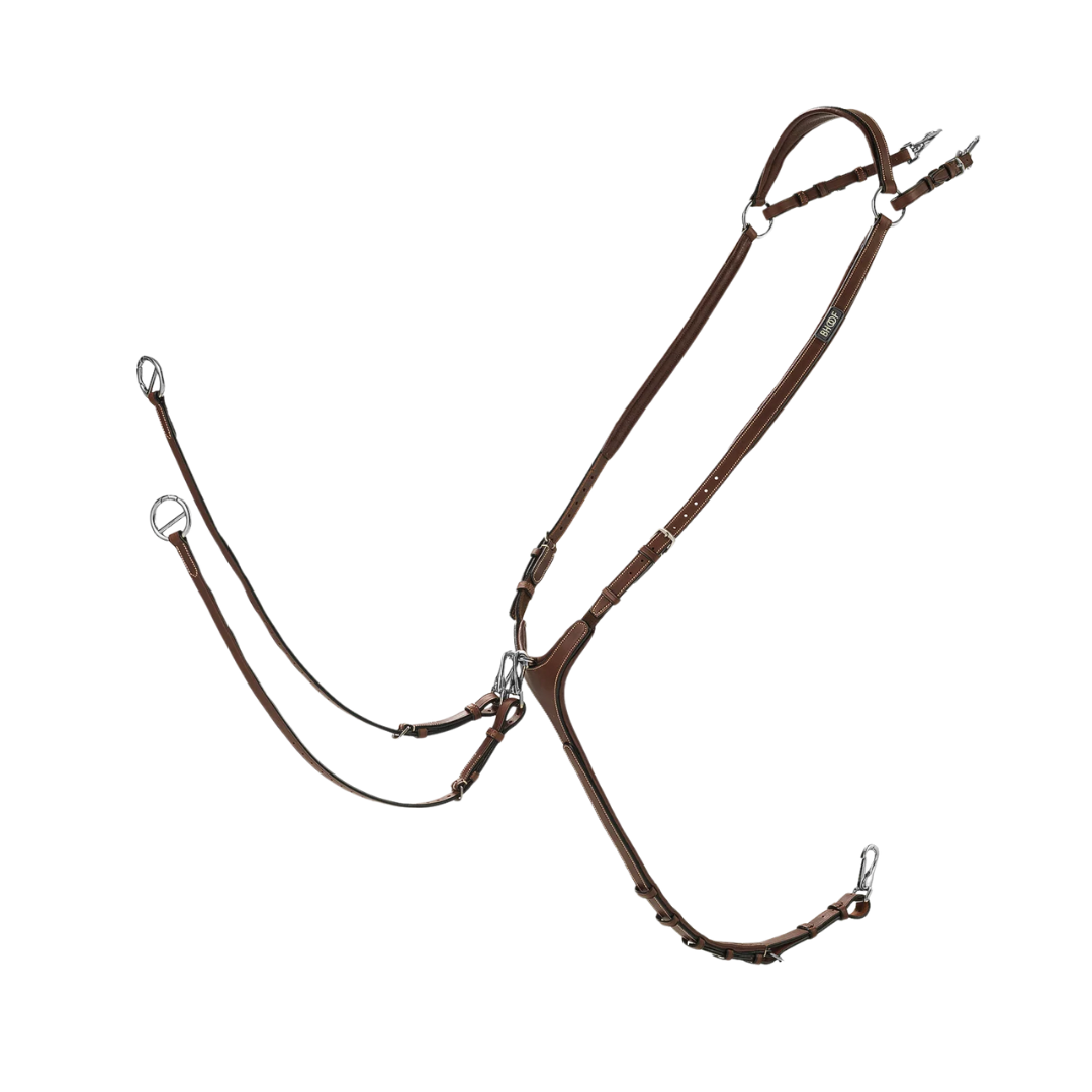 Regular priceThe breastplate features a high position design with an attachment system that easily secures to the D-rings of the saddle, providing a practical and efficient fastening method. It is equipped with stretch at the bottom of the shoulder to enhance freedom of movement. The breastplate is also padded at the front pressure points for added comfort. Made from lightweight, high-quality leather, it molds gently to the horse’s body for improved comfort.