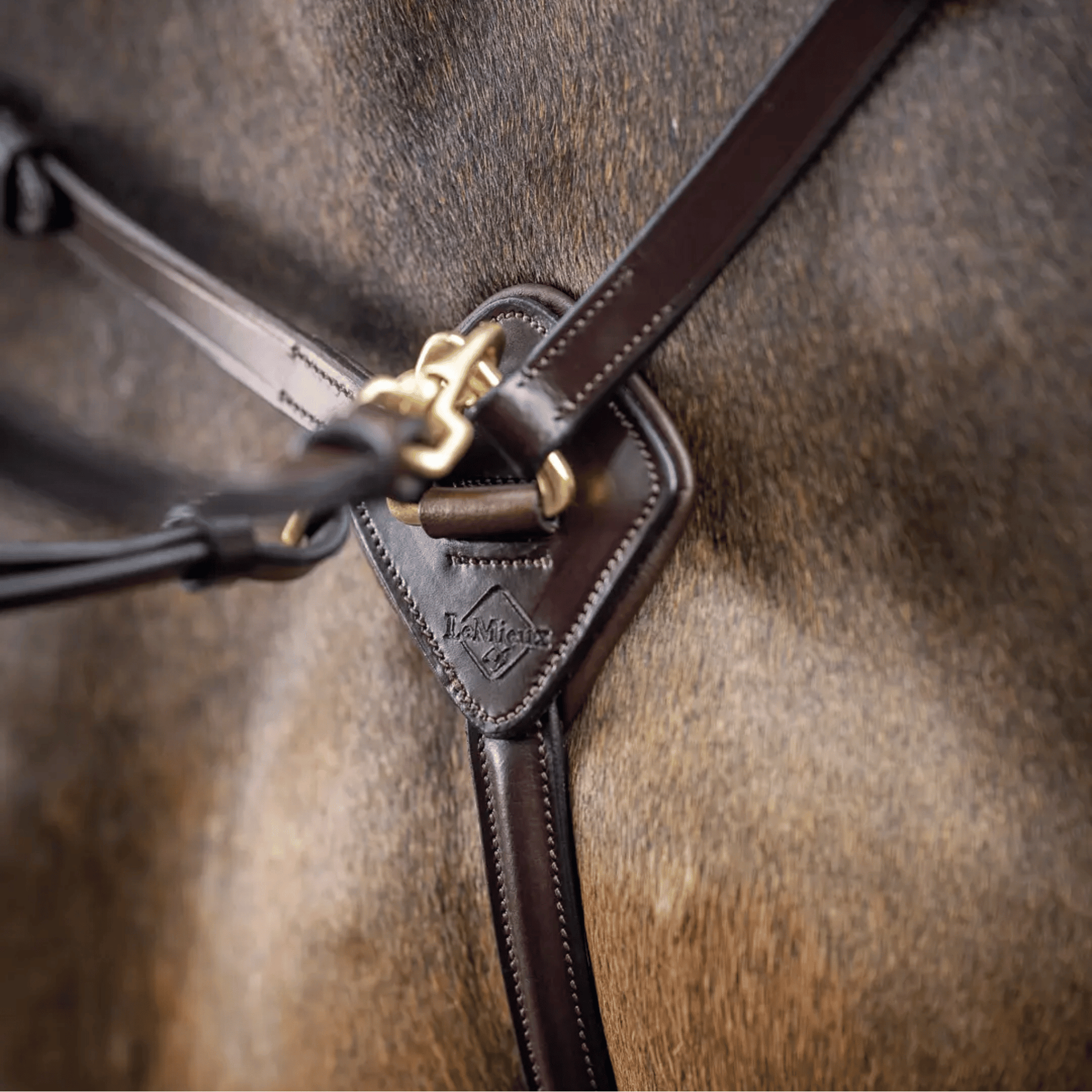 The LeMieux Breastplate with Martingale attachment is the ideal solution for your tack room with a smart appearance and practical functionality. An adjustable top piece sits with a soft leather pad at the wither and attaches to the elasticated neck straps.