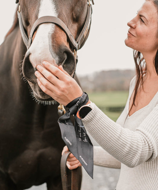 This beautiful silk twilly by Ruespari was created with an authentic print inspired by the love affair between horse and...