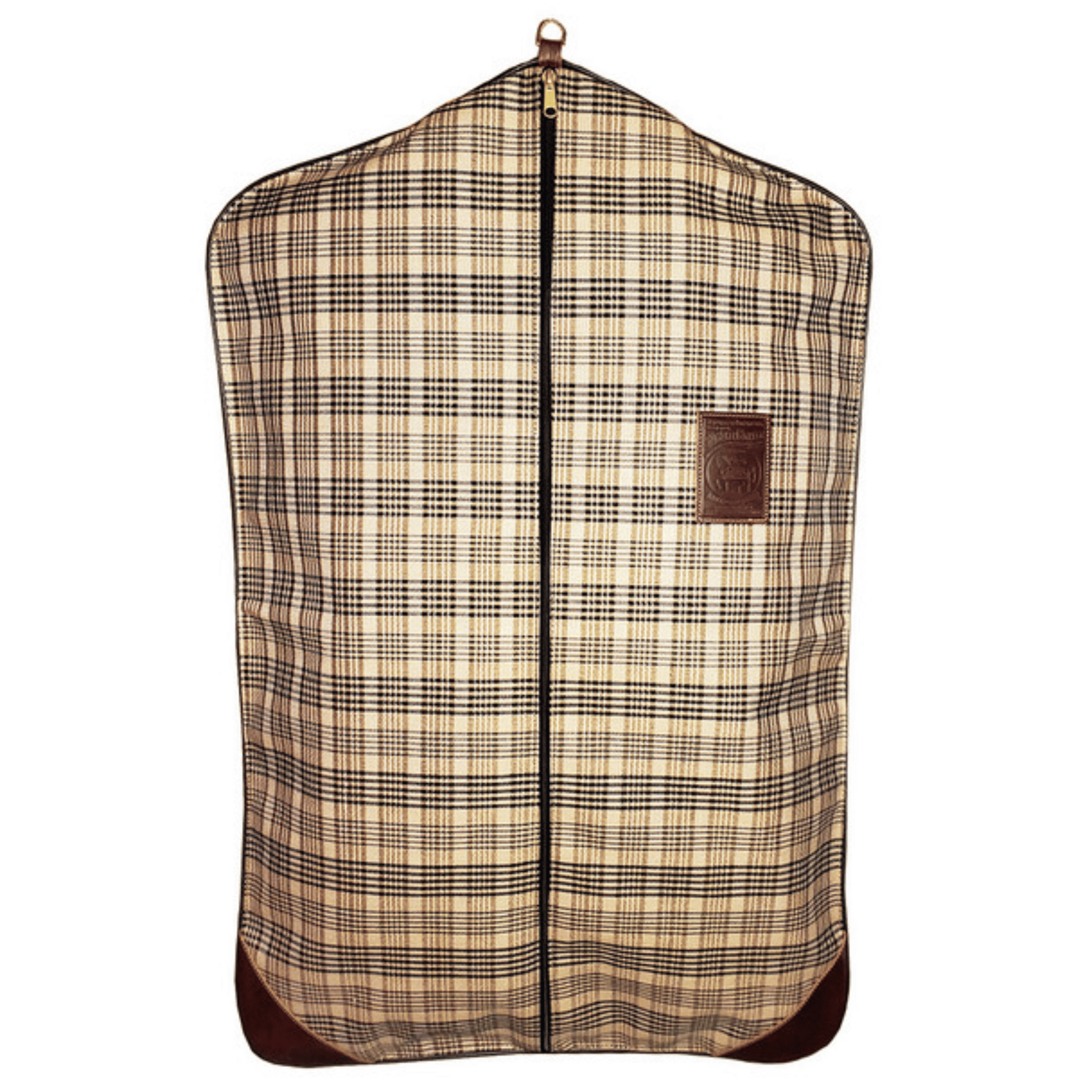 Crafted in the iconic Original Baker Plaid and refined with premium leather trim, this carrier offers enduring durability and a polished, hotel-worthy aesthetic. Fully lined and beautifully finished, it provides just the right amount of structure to make loading clothes effortless while maintaining a refined silhouette. Generously sized at 25.5" wide by 37.5" tall, it delivers ample storage for garments with a sleek, sophisticated presence.