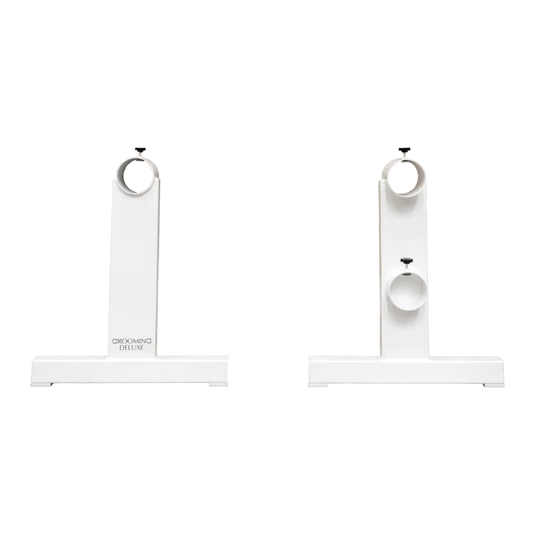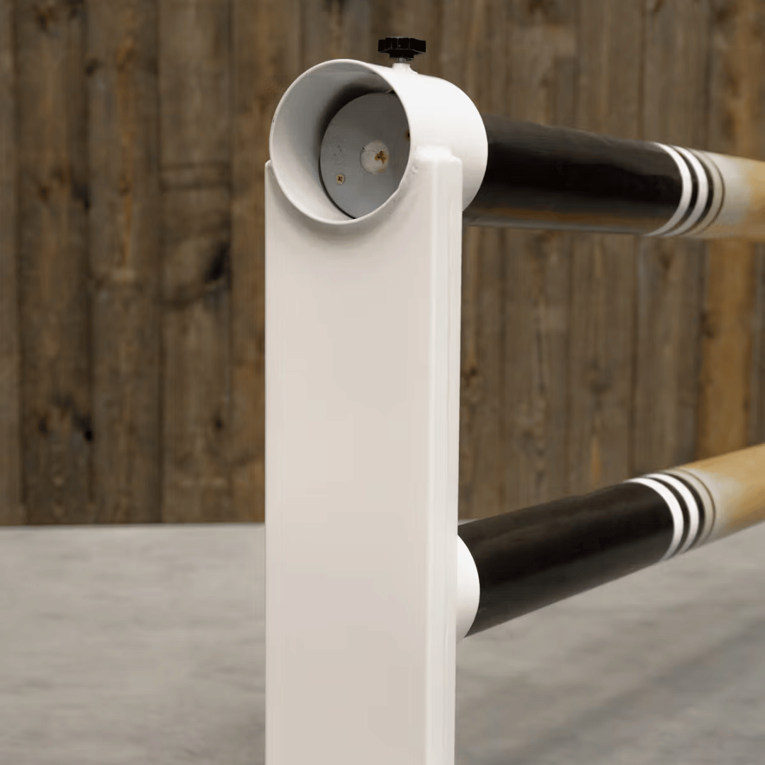 Crafted from high-quality aluminium, these T-shaped profile Cavaletti's are both lightweight and durable, offering reliable performance for training use. Finished in a sleek white color, they not only enhance the visual appeal of your arena but also ensure long-lasting resistance to wear and weather conditions. These versatile Cavaletti's are designed to fit all kinds of poles and come with an easy-to-use clamping screw for quick and secure adjustments. What makes them unique is the ability to place two poles at once, enhancing your training options with ease and flexibility. The maximum height Is 60cm and the minimum height Is 30cm. They are easy to store, lightweight to lift up, the logic choice for anyone looking for the perfect home training solution.