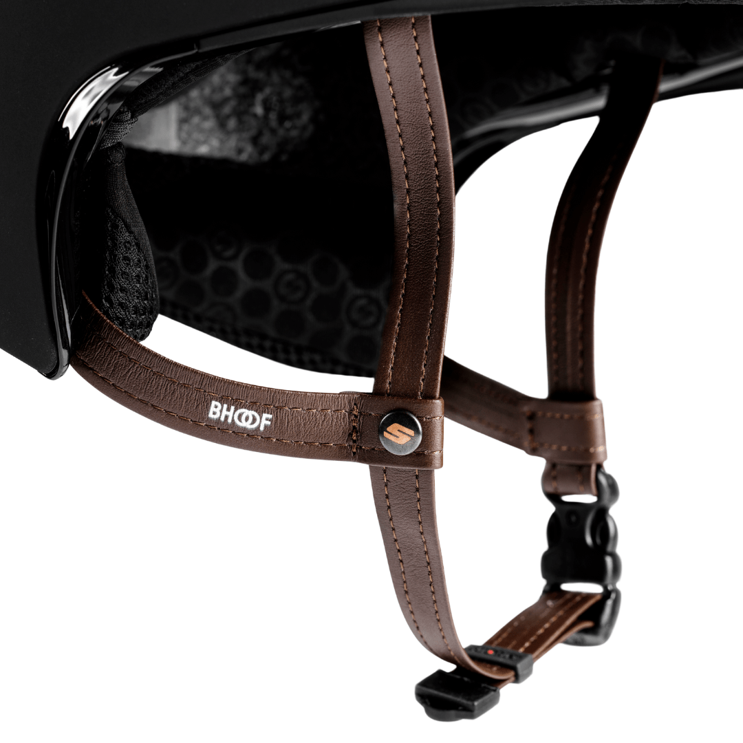 Regular priceBhoof’s lightweight Helmet 2 by Suomy is crafted with focus on safety and design. The shell is very strong with its high-tech materials such as carbon fiber and composite thermoplastic resin. Showcasing a sleek appearance with a matte black finish and chrome details. The helmet includes a brown chinstrap with a quick-release safety feature.