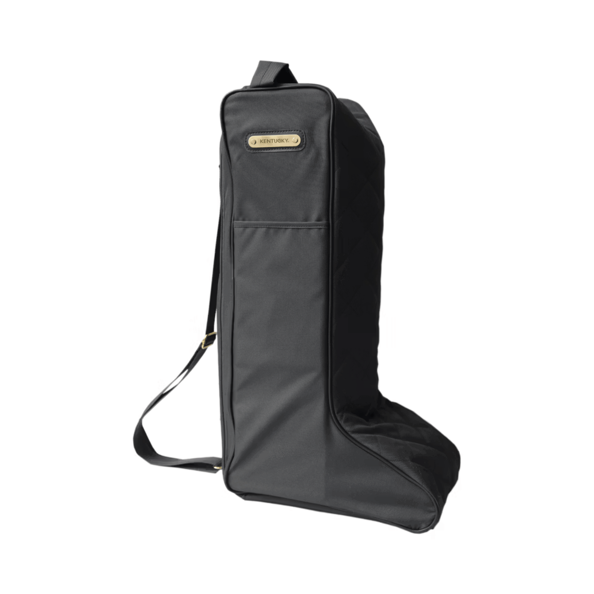 Regular priceThe Kentucky Horsewear Boots Bag offers protection to your boots during transportation, at shows or at home. The Boots Bag has artificial rabbit skin on the inside to avoid scratches on the leather. The name tag on the front can be turned over and personalized. The Boots Bag can be easily carried thanks to the handle on the top or to the long nylon strap, which can be adjusted in length. The Boots Bag has the same diamond quilting and artificial leather piping as our Bridle Bag, stable set (curtain, guard, head protector) and our rugs! Therefore, this Boots Bag tops of the Kentucky show look. The Boots Bag is machine washable at 30°, no dryer.