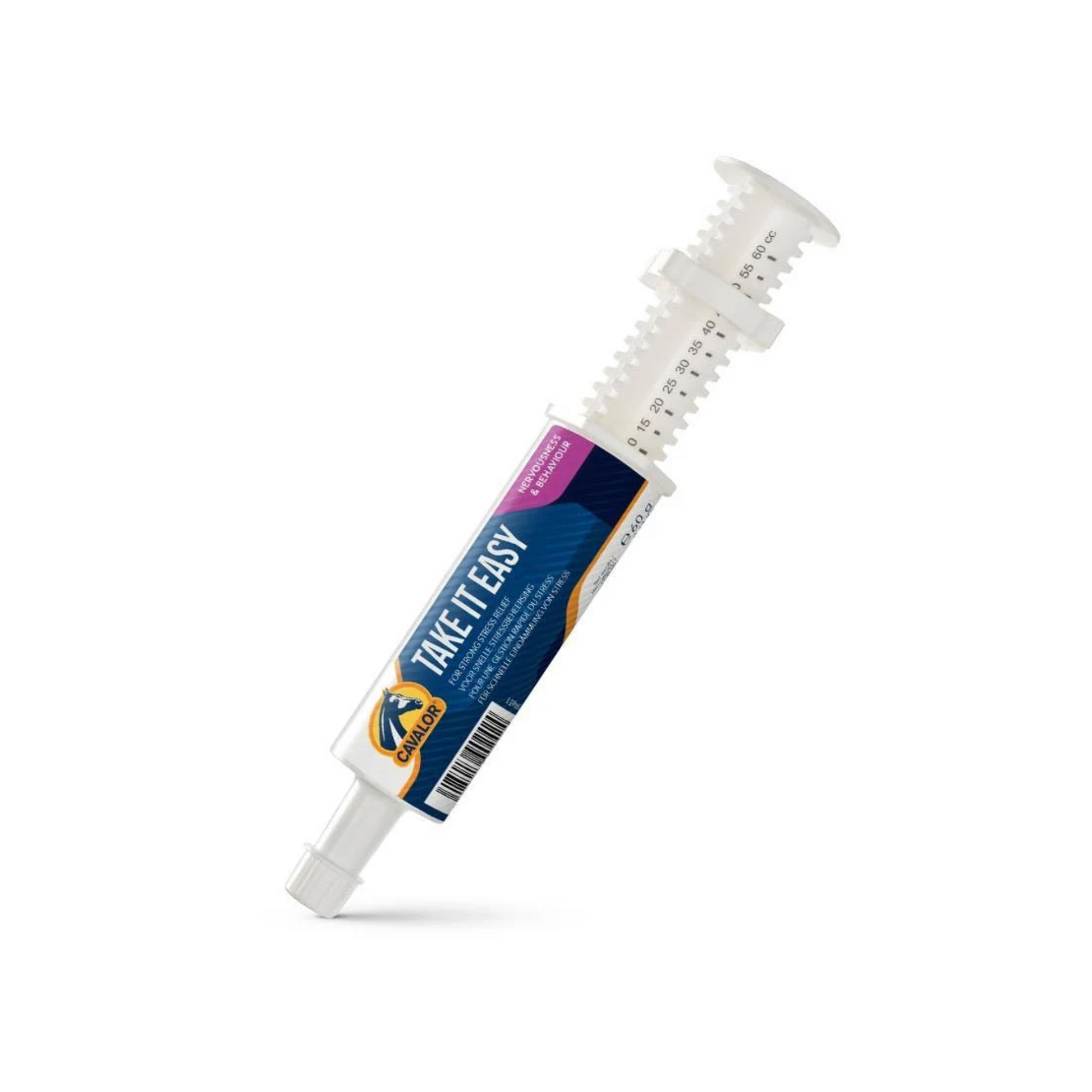 Help ease your horse’s stress with CAVALOR Take it Easy calming paste. The relatively high dose of tryptophan in this oral paste quickly and easily calms horses. It promotes focus and relaxation during stressful situations such as competitions or transportation. Sold in a pack of 6