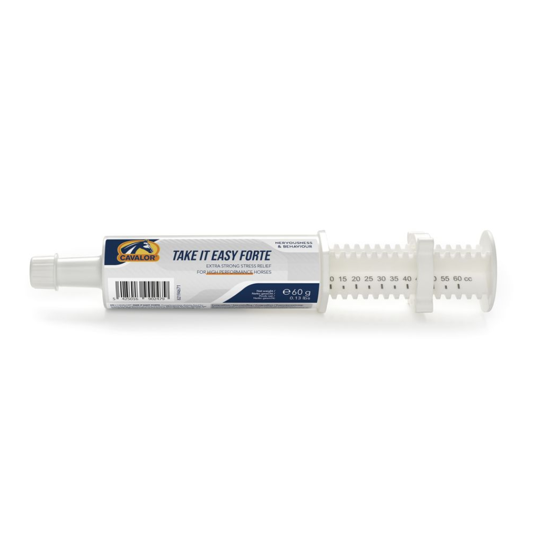 Regular priceCavalor Take It Easy Forte is a calming paste supplement that is extra-powerful for quick and effective results. This potent supplement reduces anxiety and the impact of stress while improving concentration. This paste is perfect for using right before high-stress events such as competitions and transport. Sold in a pack of 6 tubes.