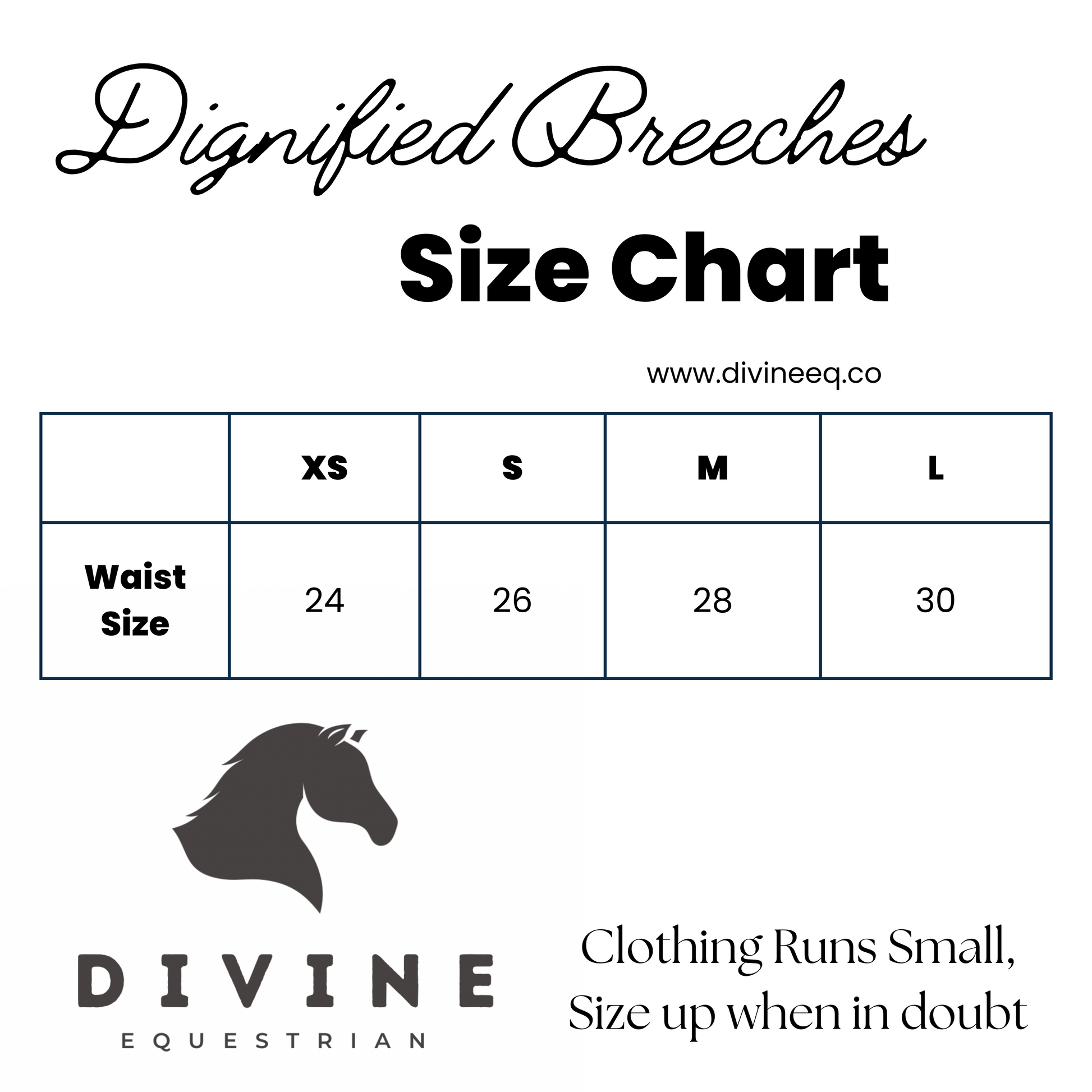 Our tagline, "Be Dignified, Be Unstoppable," encapsulates the spirit of these breeches!! Embrace the elegance and grace of dignified competition while feeling unstoppable in your pursuit of excellence!!