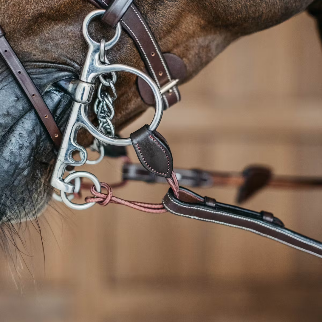 The Long Pelham Strap connects the Pelham bit to the reins. It is a lightweight strap that softens the effect of the mouthpiece on the horse's mouth.