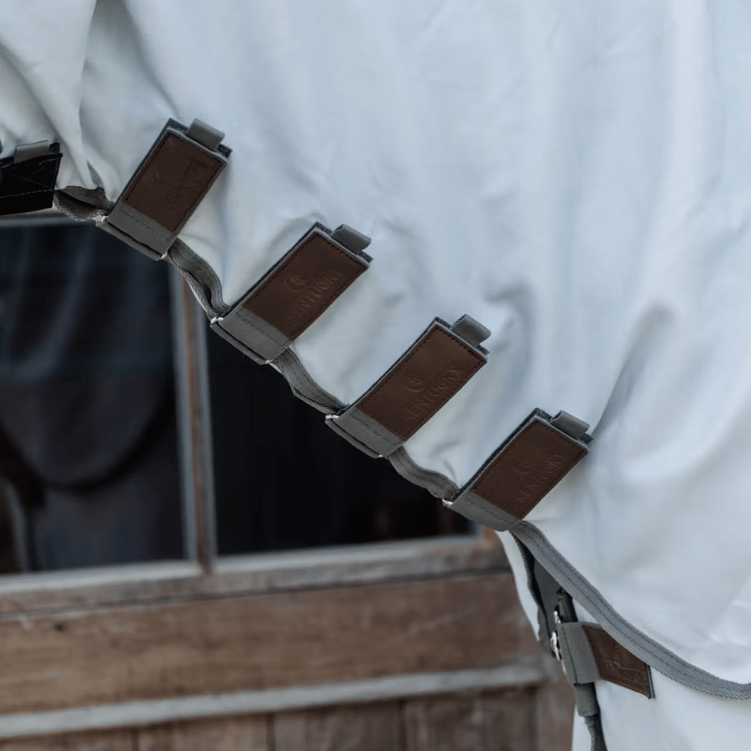 The fabric is strong, breathable, and very supple to provide your horse with the best comfort. Thanks to the light color of the rug, it will reflect the sunrays and does not absorb heat. 900 denier.