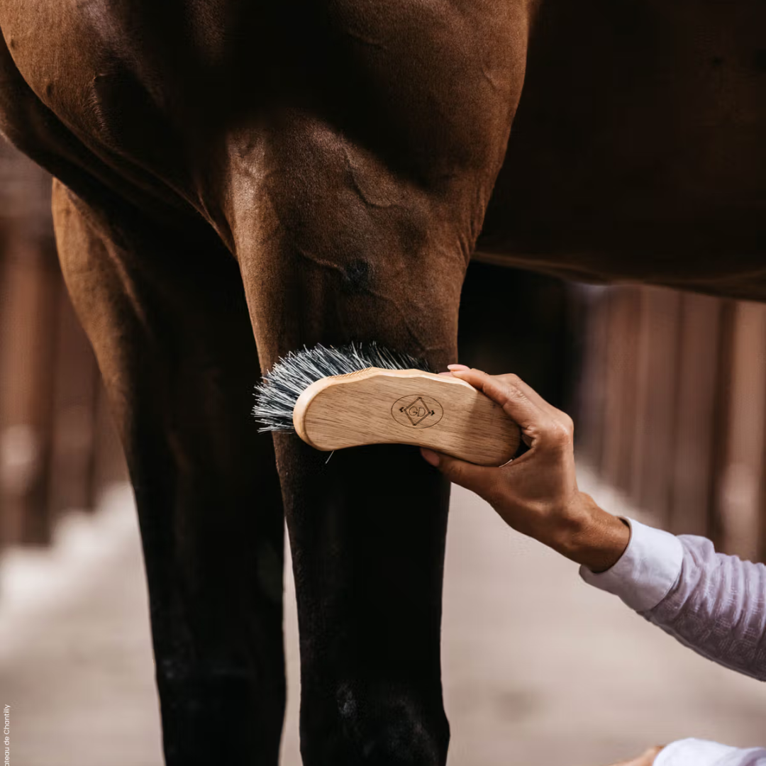 This varnished brush is filled with grey Tampico, a vegetable fiber that is generally used to make ropes. This makes it a very hard brush, ideal in extreme weather conditions when the horses’ coat is so muddy. You can also use it on the hoofs. The brush has a banana form, for a better grip. Clean your brush by damping it into soapy warm water and make sur it lasts for a long time. Your horse will become the star of the stables thanks to this brush!