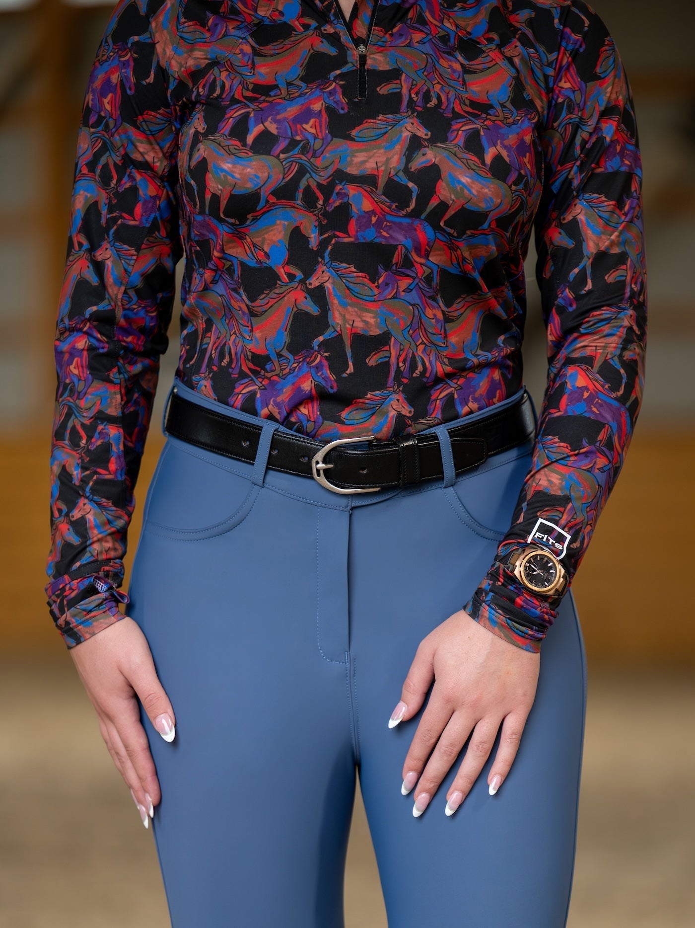 Available in classic black and our exclusive Wild Horses jewel-tone print, Juniper offers equal parts function and style. Whether layered under your favorite vest or paired with breeches for all-day rides, it’s built to keep you warm without restricting your freedom of movement.