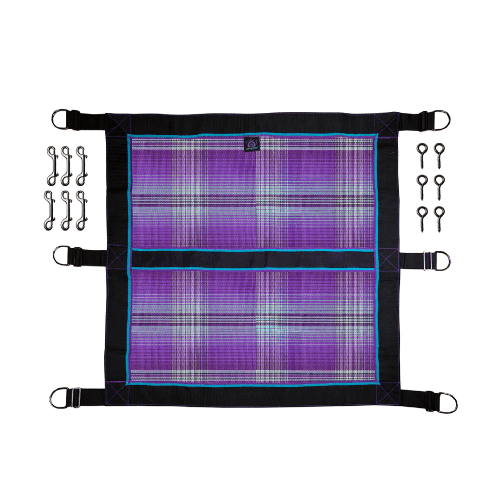 Regular priceAdd a touch of elegance to your stall door opening while keeping your horse safely in the stall. Made of durable Textilene® mesh and bordered on all four sides with three-inch nylon webbing, the Kensington Stall Door Guard is perfect for securing stalls. Beautiful coordinating hardware completes the look, with six sets of heavy-duty D rings (three on each side) for easy fastening, double ended snaps and screw eye for attaching to the barn door.
