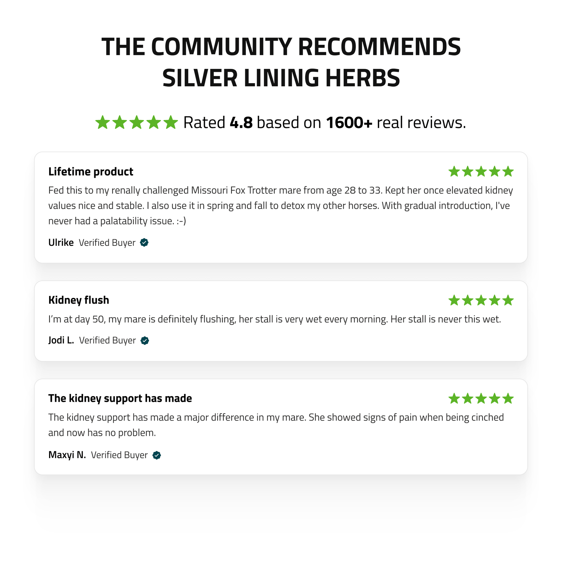 Kidneys are another area where today’s horses are put under extreme stress with a chemical environment. The kidneys primary function is to cleanse the blood and produce urine, which excrete wastes; due to the critical and body-encompassing nature of this job, improvement in kidney function will help restore and relieve a wide range of systems and symptoms. Kidney Support for Horses, helps maintain optimal kidney function, and may be beneficial in: