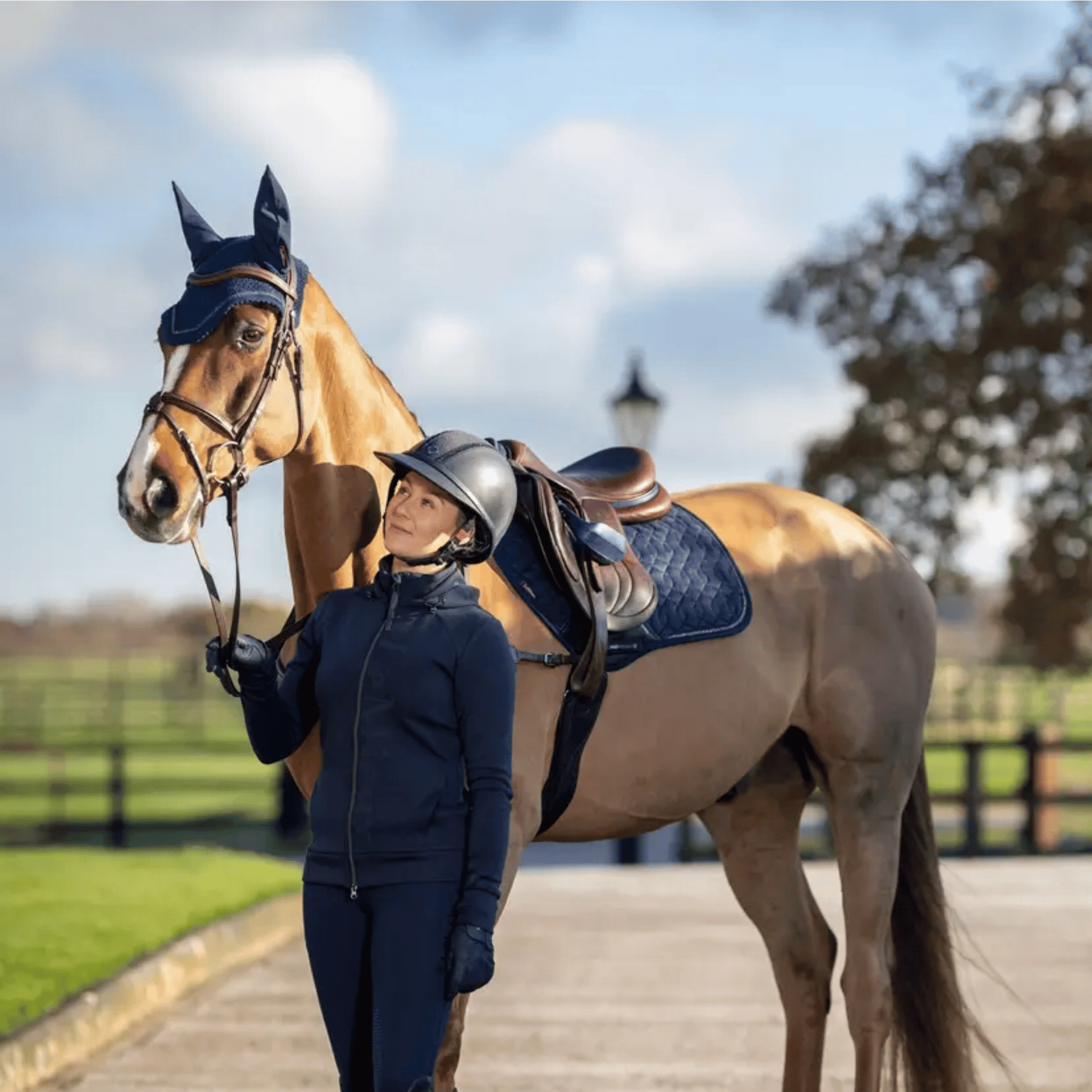 Secure and close-fitting under the bridle for maximum comfort, with minimal branding for a sleek and professional appearance.