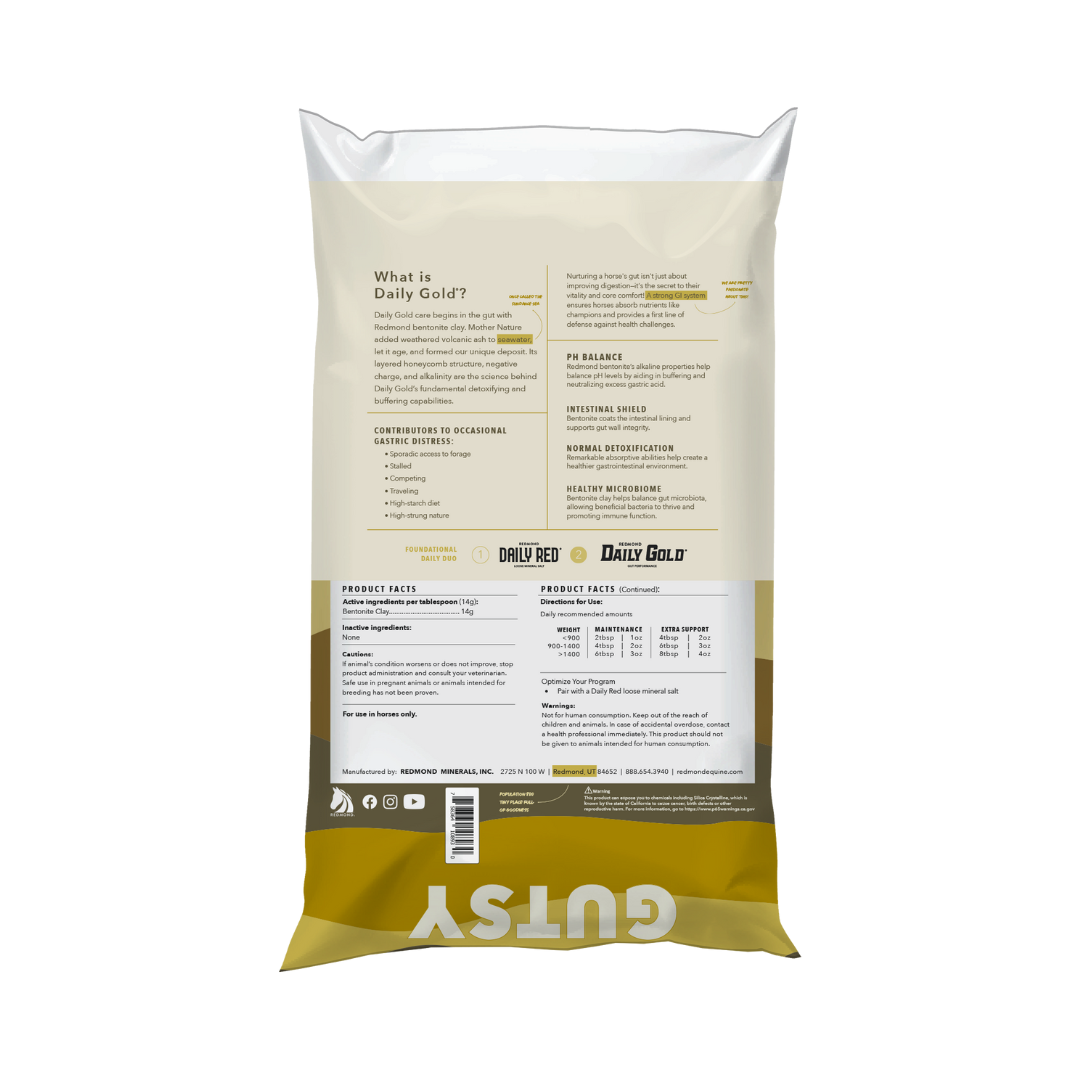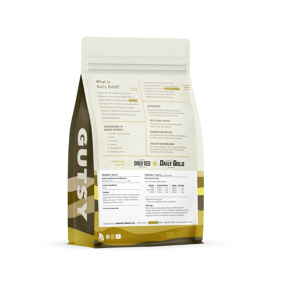 Improve and maintain proper digestion in your horse with Redmond Daily Gold Stress Relief Horse Supplement. These natural ingredient treats help issues including ulcers, diarrhea, lack of appetite and stress.
