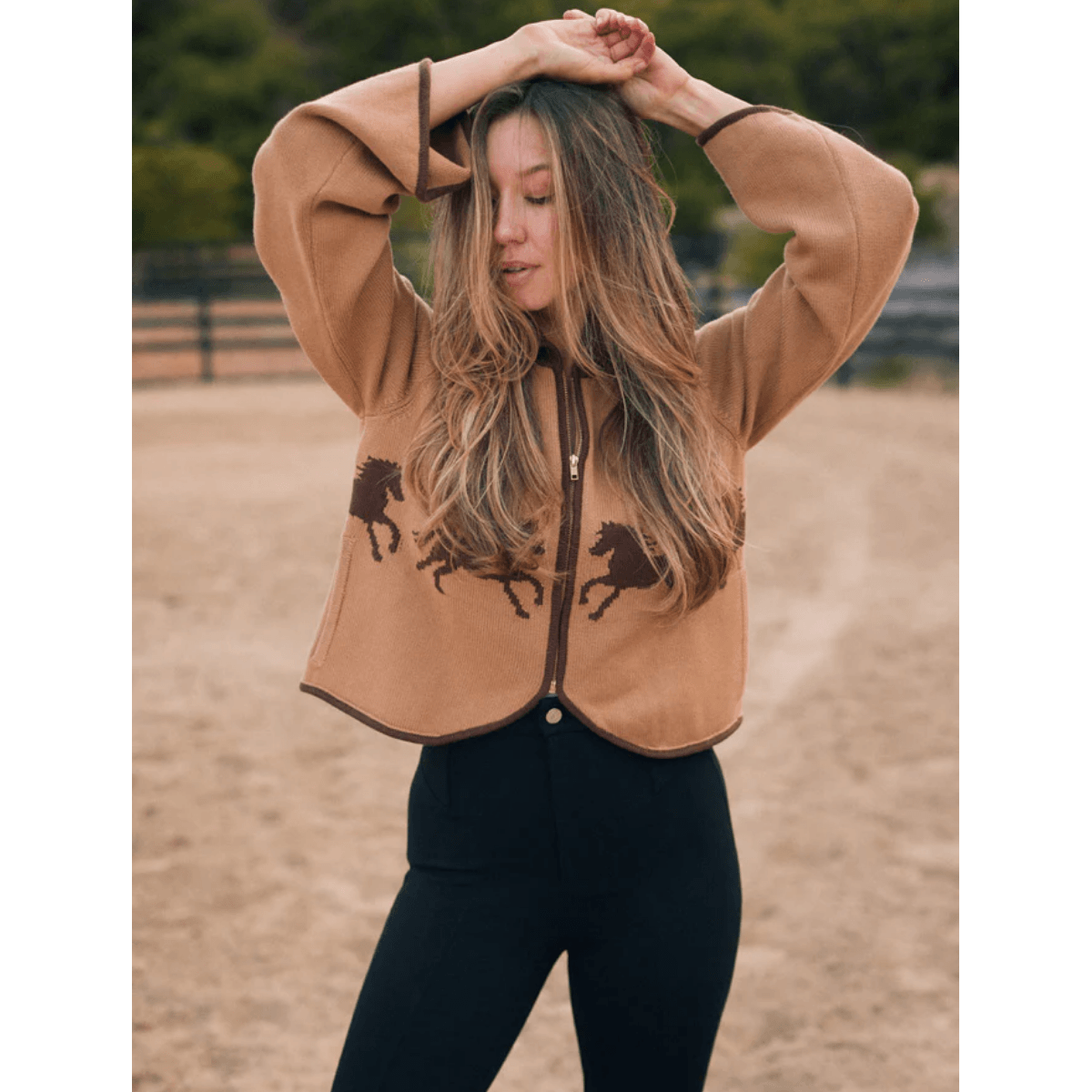 What truly sets Parker apart is its artful detailing—galloping horses are seamlessly woven through the side seams in a refined jacquard knit, creating a subtle yet striking nod to equestrian heritage. Finished with flared sleeves, front pockets, and a structured collar, every element is intentionally designed to balance function with timeless style.