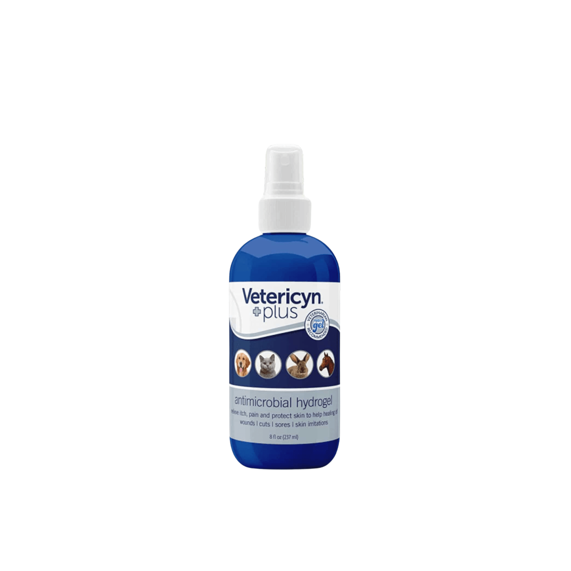Regular priceProtect, moisturize, and provide soothing relief to wounds and topical skin issues on your pet. Vetericyn Plus Wound & Skin Care Antimicrobial Hydrogel Spray adheres to the affected area to cool and protect while helping to keep the wound clean and free from potential infection. The gel sprays in a fine mist and gels on contact to cling to the site and immediately provide soothing relief and protection. The hydrogel provides the optimized moisture (not too wet or too dry) to maximize the wound healing environment while helping to keep dirt and debris out of the area. Vetericyn Plus® Antimicrobial Hydrogel will not cause dermal irritation and is safe for use in sensitive areas. For best results, we recommend flushing and cleansing the wound with Vetericyn Plus Wound and Skin Care liquid prior to applying the hydrogel.