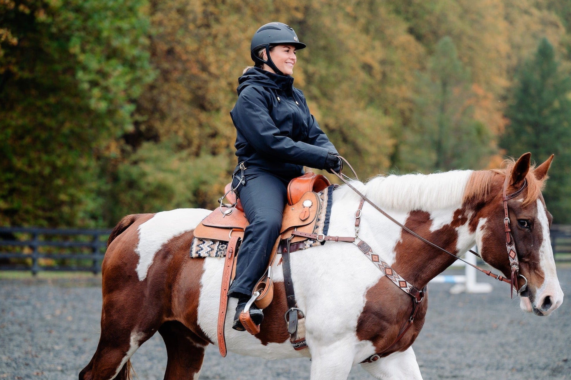 - Secure pockets, including a horse treat pocket and a crop pocket