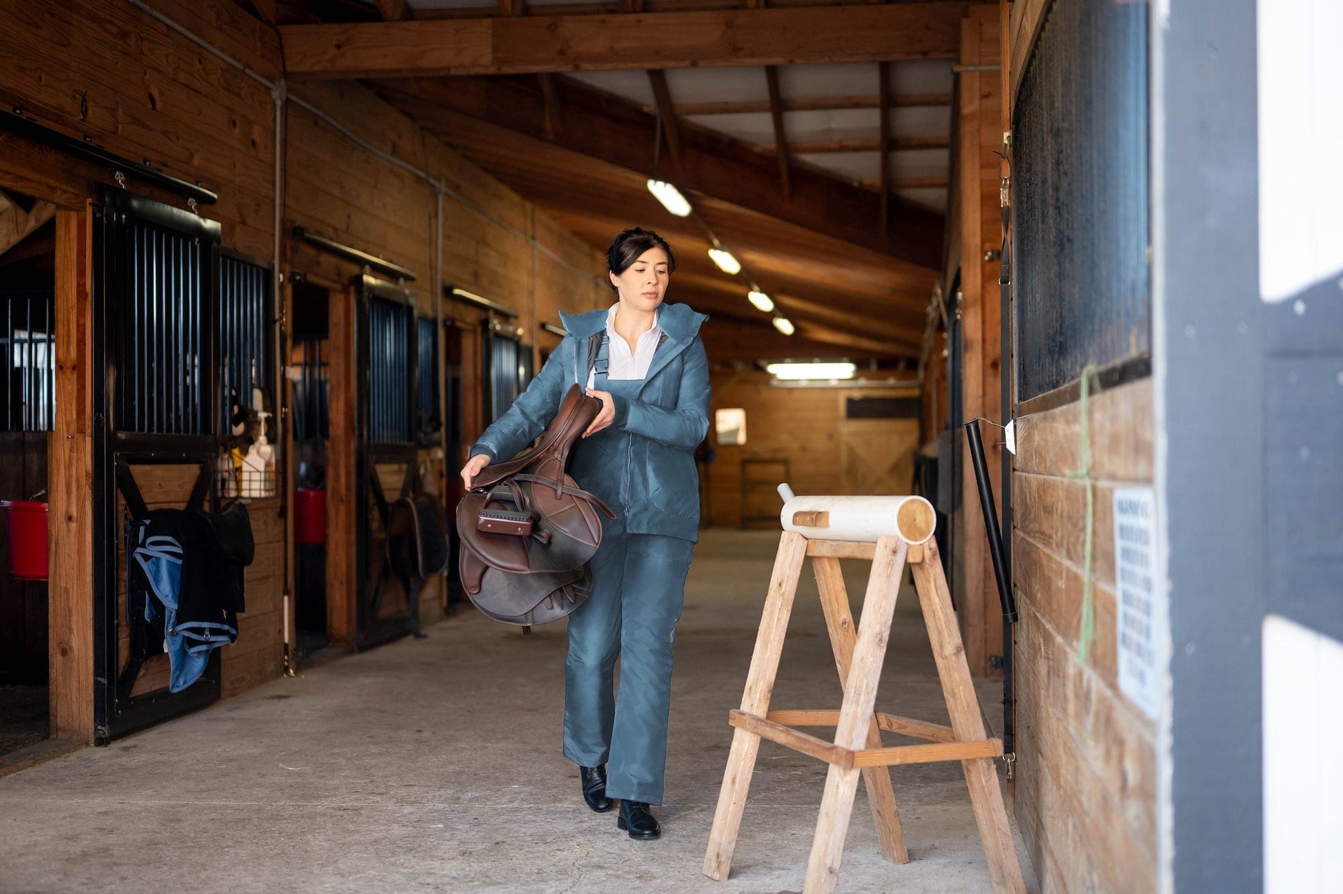 Regular priceOur much-lauded insulated winter riding jacket is back in a second generation and ready to take on winter with you! It's lighter weight but just as warm, and the backpack straps have been upgraded to a sturdy but soft elastic. Our favorite features include the double ended zipper that allows for hip mobility in the tack, thumbholes to keep your hands warm, and an adjustable riding hood that fits over a helmet.